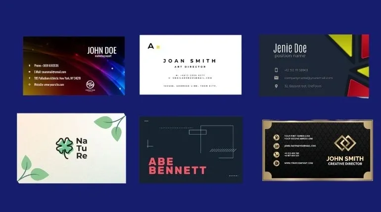 - Large library of business card templates across common styles (minimal, bold, modern, classic).